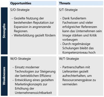 Praxisbeispiel SWOT- / TOWS-Matrix