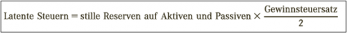Werden stille Reserven berücksichtigt, müssen gleichzeitig auch die daraus resultierenden latenten Steuern einbezogen werden. Diese entstehen, da bei einer späteren Auflösung der stillen Reserven eine Steuerbelastung anfällt (Lütolf et al., 2023, S. 202).
